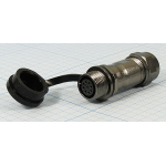 Вилка на панель, крепление гайкой ST1212/P9, металл, резьба, монтаж: пайка, контактов: 9 x 0,7 мм, ток: 3А, напряжение: 125V, IP67, крышка: резиновая заглушка.